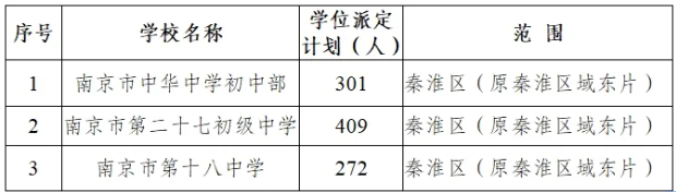 秦淮区(原秦淮区域)公办初中学位派定规划