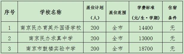 江宁区内民办一贯制学校小学部直升本校初中部的学生,可在其他民办初中、南京番邦语学校中最多选1所报名。