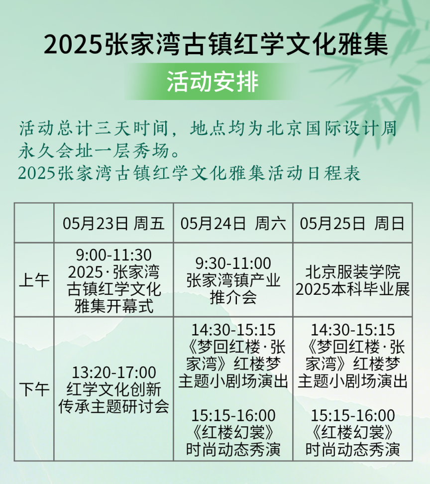 本次以张家湾红学文化为主导,深度交融北京服装学院的先锋汲引资源与张家湾蓄意小镇的产业生态,助推张家湾“红学圣地”竖立,施展腹地区的非遗文化。