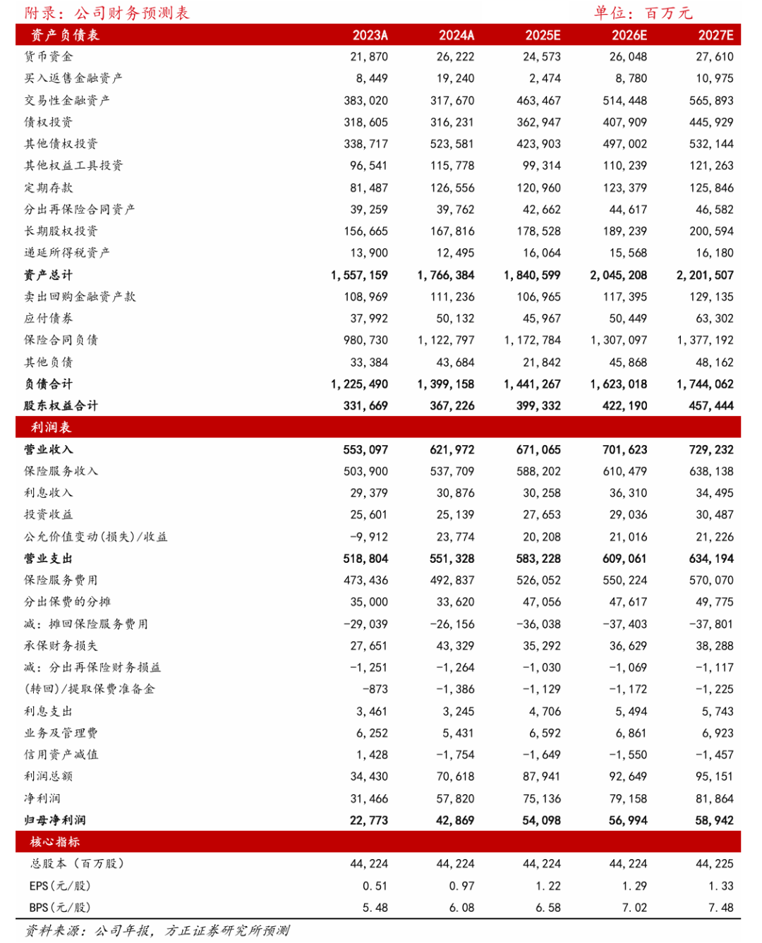 投资提议:守护公司激烈保举评级。公司各条线业务霸术筹谋庄重,财险业务:COR守护行业较低水平,Q4瞻望因霸术后果与用度科罚才调握续擢升角落改善,全年有望保握在96%-97%把握,公司利润增速有望握续擢升。寿险业务:价值率因产物结构调治以及报行合一瞻望握续改善,东谈主身险业务价值将来有望在健康险握续改变布景下守护增长。资产端:公司投资立场庄重,稳步扩大职权握仓范围,随职权商场握续回暖,投资收益有望进一步增厚。瞻望25-27年公司归母净利润541、570、589亿元,增速差异为+26.2%、+5.4%、+3.4%,刻下股价对应25-27E的P/B倍数为1.36/1.28/1.20倍。